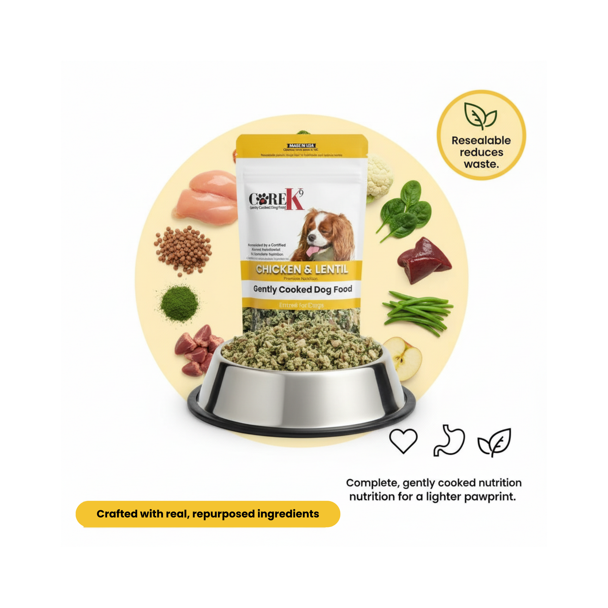 El plato principal de pollo y lentejas CORE K9 para perros está formulado para satisfacer las necesidadesAsociación Americana de Organizaciones de Coordinación de Asuntos Exteriores (AAFCO)Perfiles nutricionales del alimento para perros adultos. Visite a su veterinario regularmente para mantener la salud de su mascota. Ofrézcale siempre agua fresca.