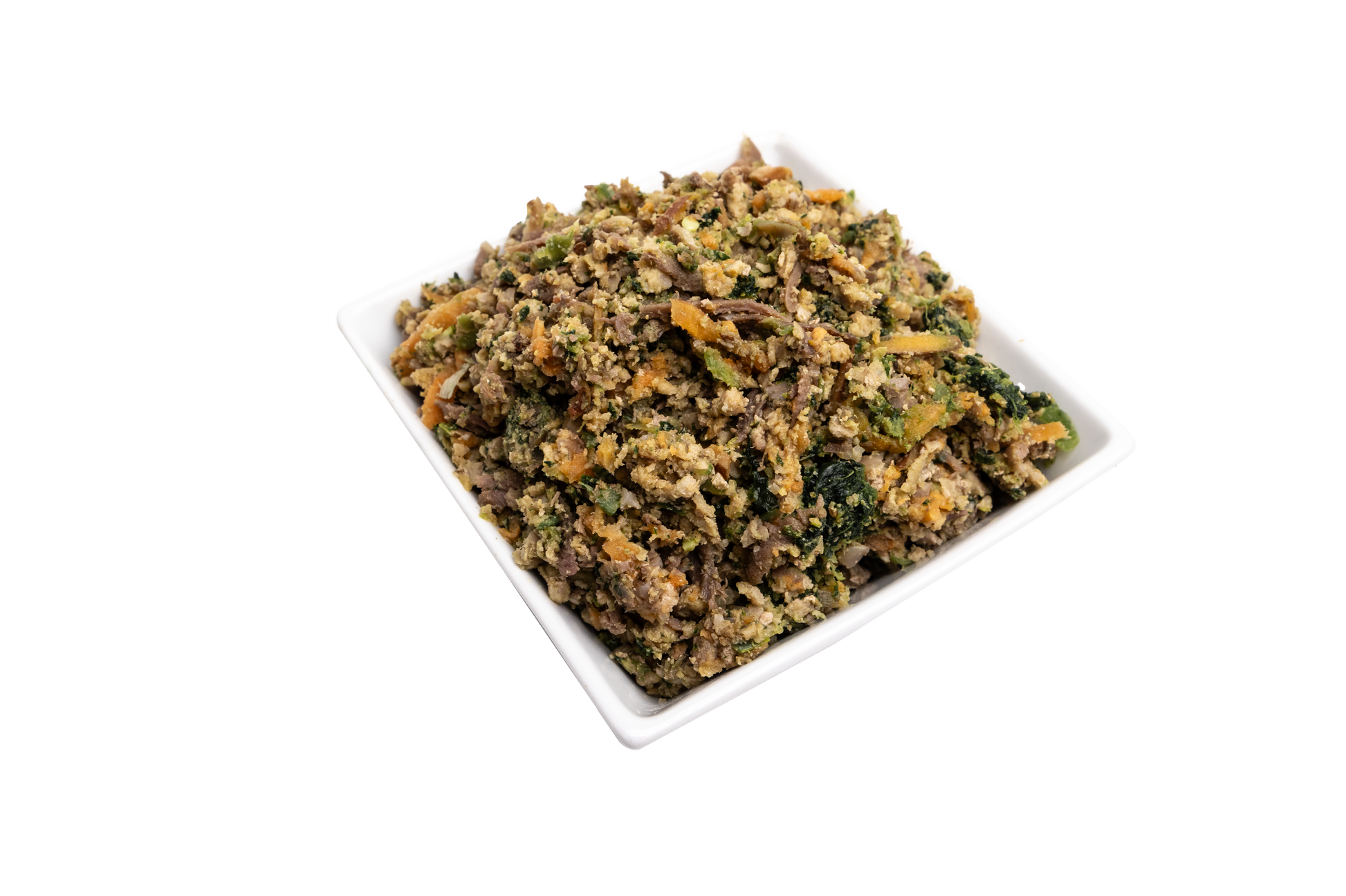 Ground Turkey, Sweet Potato, Turkey Gizzards, Kale, Green Beans, Squash, Beef Liver, Cranberries, Fish Oil, Kelp Meal, Calcium Carbonate, Dicalcium Phosphate, Yeast Extract, Saccharomyces cerevisiae, Salt, Vitamin E Supplement, Zinc Proteinate, Iron, Proteinate, Manganese Proteinate, Thiamine Mononitrate, Vitamin D Supplement