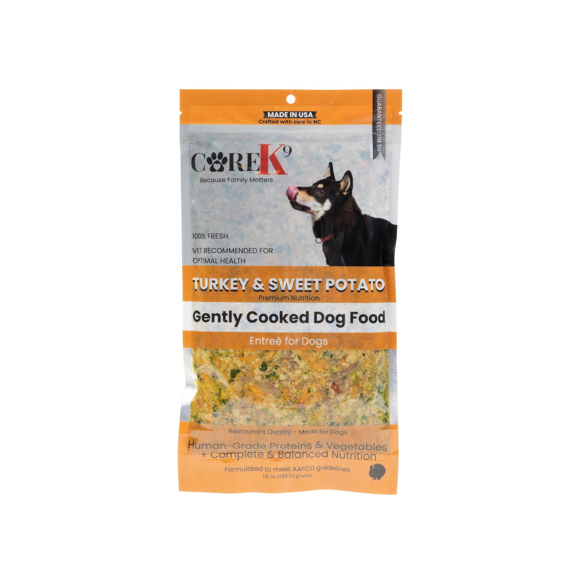 CORE K9 Turkey and Sweet Potato Entrée for Dogs is formulated to meet the AAFCO Dog Food Nutrient Profiles for Adult Maintenance. Visit your veterinarian regularly to maintain your pets health. Always provide fresh water.